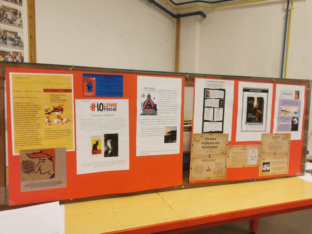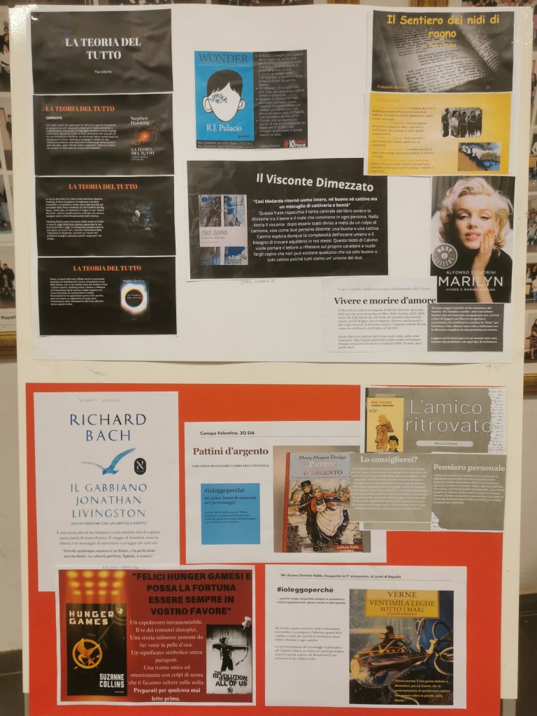 Sotto alcune foto della mostra realizzata in Auditorium con gli elaborati prodotti dagli studenti del nostro istituto per il contest “Il futuro inizia con un libro”.