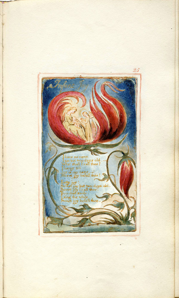 Illustrazione e testo di William Blake, poeta e pittore, “Infantile Joy”.